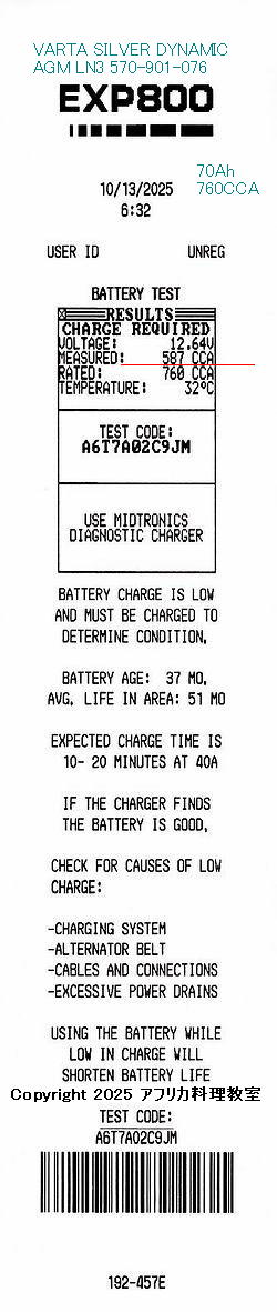 2025-10-13 GOLF 2.0 TDI バッテリー取替え AQUA DREAM LN3-AGM 64843km 雨もあがったので、バッテリーを交換することにした。 |