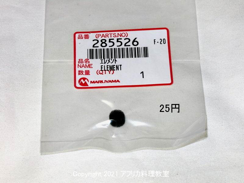 オイルタンクのブリーザの手前にあるスポンジ(255526エレメント)を交換すべく部品発注した。1個25円。