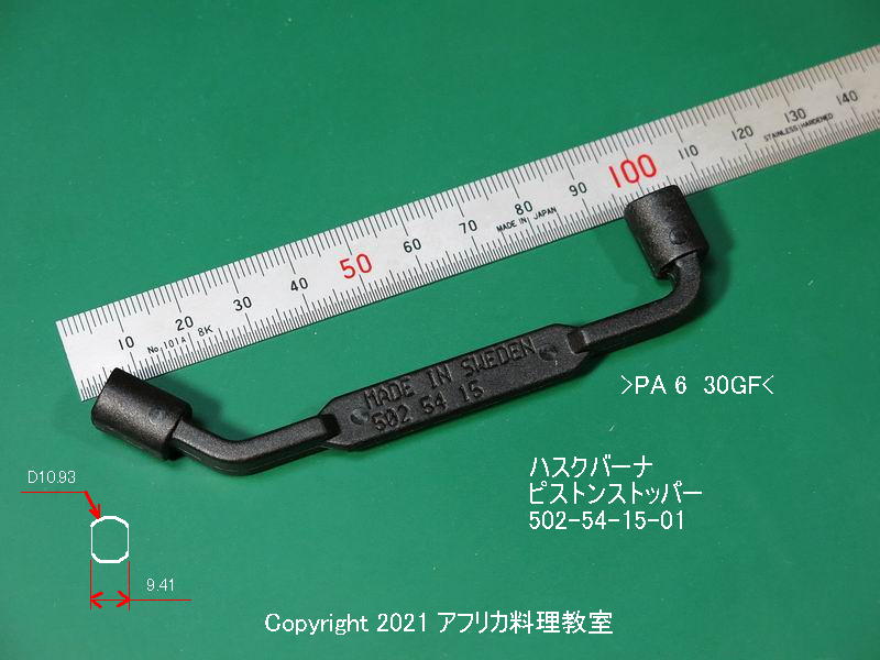 これは 樹脂製 ピストンストッパー 中国製、 ALIで213円 射出成形、ガラス封入樹脂、まあまあ良く出来ている。 棒が長いので、短くカットして先っぽをSR6ぐらいで整えれば尚良し。 | |