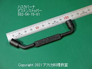 これはハスクバーナの樹脂製ピストンストッパー だいたい300円ぐらい。 プラグ穴から燃焼室に挿入し、ピストン上死点手前9mmのところで、シリンダヘッドとの間に挟み込むことでピストンの動きを止める工具。 よく考えられているね。 | |