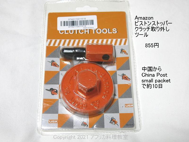 これはAmazonで売っている、 ピストンストッパーとクラッチ取り外しレンチのセット。 私が購入したときは855円 その後すぐ1160円に上がった 送料考えると855円では儲けが無かったのだろう China Post small packetで約10日 浙江大洲园林机械有限公司製 Zhejiang Dazhou Garden Machinery Co., Ltd., | |