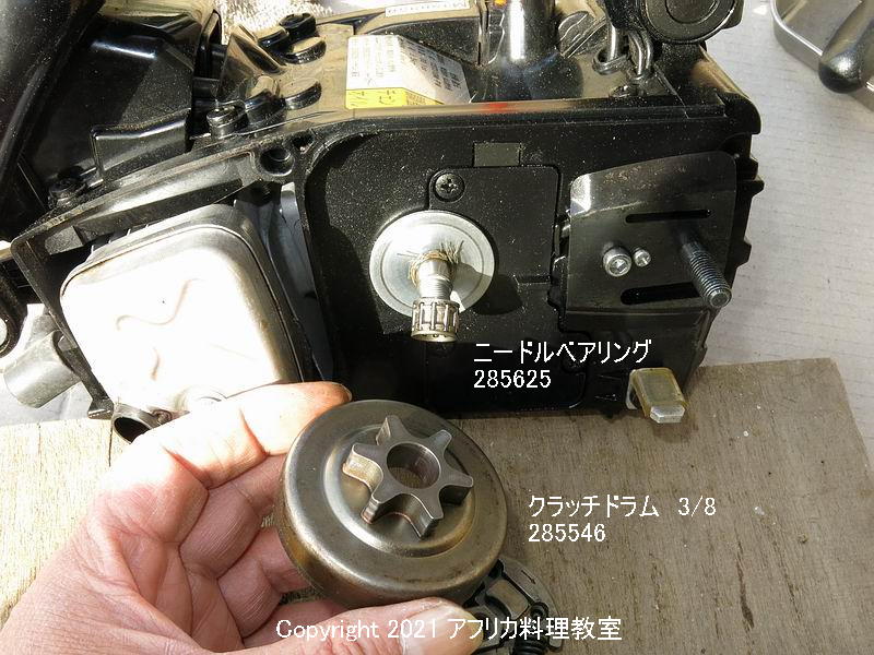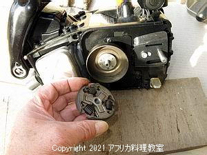 クラッチが外れました。クラッチドラムの手前には、ワッシャd8×D26×t2があるが、これも外しておく。 | |