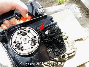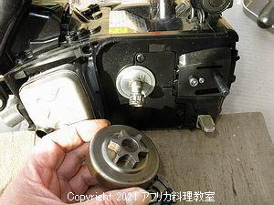 CST310M-PW 2号機 チェーンオイルが出たり、出なかったり。調子が悪い。オイルポンプを駆動するウォームギヤとか、オイルポンプのピニオンギヤが損傷してないかどうか確かめるには、クラッチを外さなくてはならない。 |