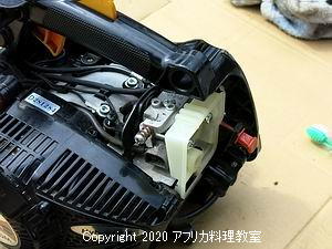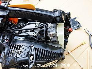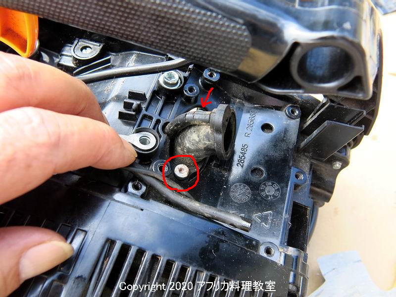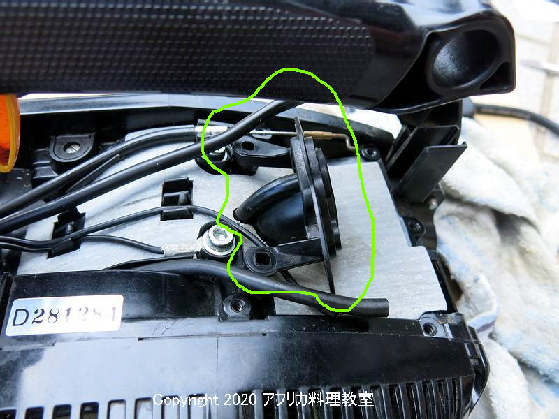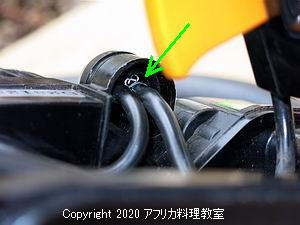 パーツリストでは、チューブクリップの絵が記載漏れであったが、送り側(燃料タンクへ吐き出す側)にはチューブクリップがついている。これを嵌めるのに苦労した。 燃料パイプは短く、かつグロメットと一体成形されており、余長がなく引っぱっても外に引き出せない。 東金の人は、メンテのことを考えずにわざと短く作る。あと15mm長ければやりやすいのに。 | |