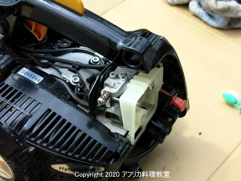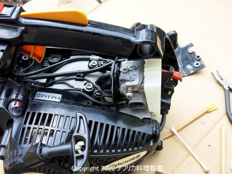 混合燃料を入れ、プライマリポンプでキャブのエアーを吸出し、キャブに燃料を貯める。 大陸製は固いと思ったけど、操作してみるとそれほどでもない。悪くは無い。 まあ良しとするか。 |
