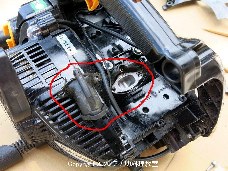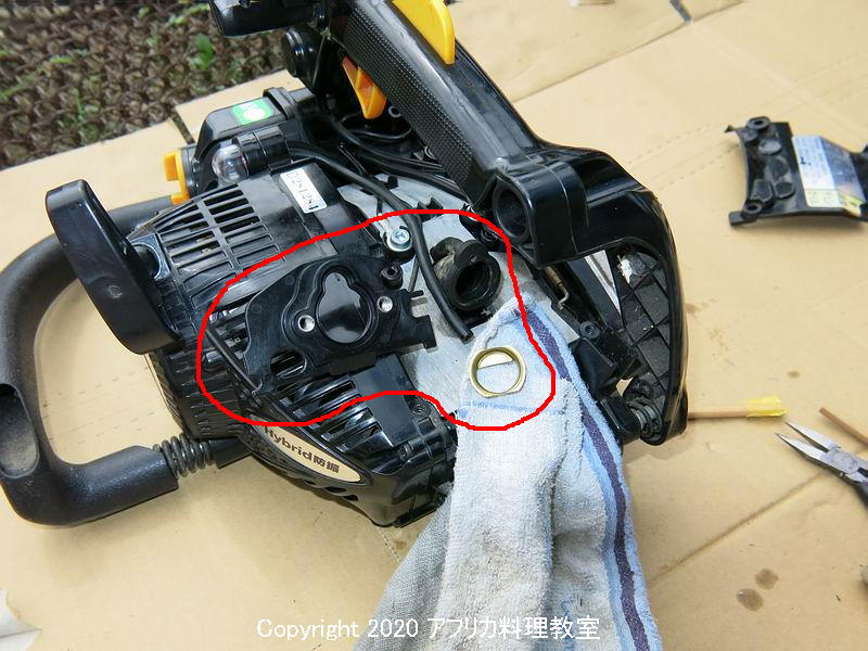外した部品を元通りに戻し、リコイルスターターも元に戻し、