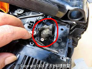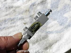 次にプレートを外すのであるが、インシュレータ側のゴムをひずませて、ひっこぬく。 | |