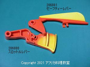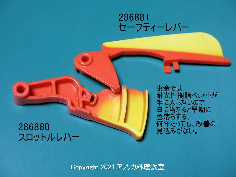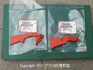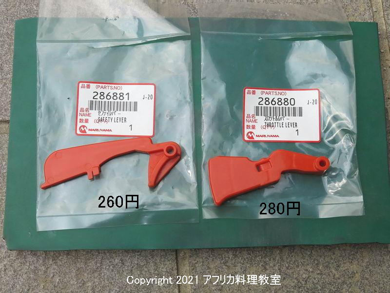 交換パーツ 286881 セーフティーレバー260円と 286880 スロットルレバー280円 (ともに税別) | |