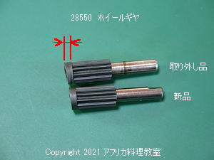 ホイールギヤは、山が若干削れていた。 新品部品と比較すると、調整ねじをいっぱいに緩めたときの当たりを軽くするためなのか、形状が若干変更になっていた。 なので、ギヤも交換することにした。 | |