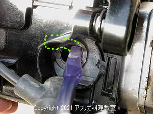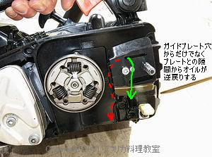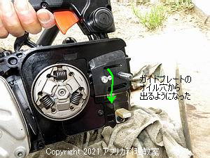 オイルがちゃんと出るか確認したら、本来はガイドプレート穴からのみ出るべきところ、