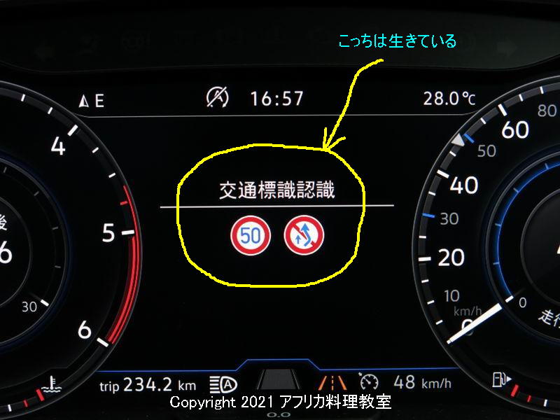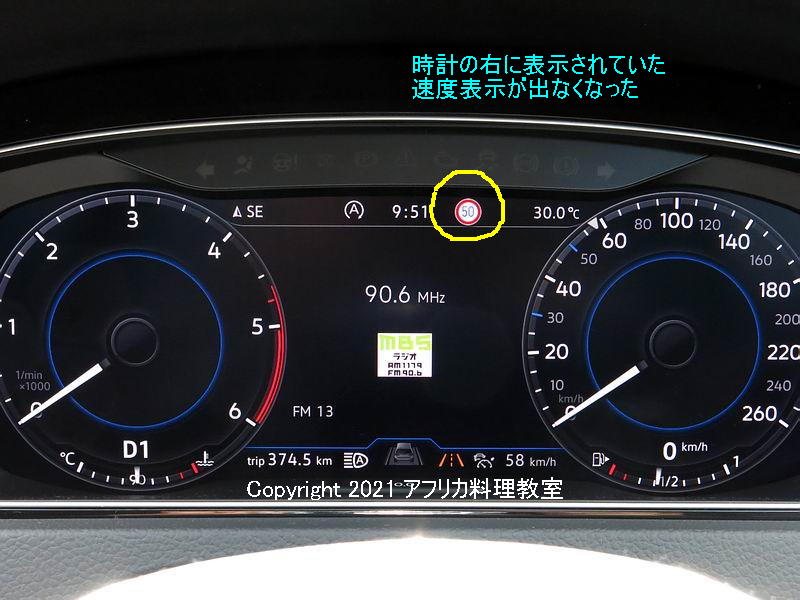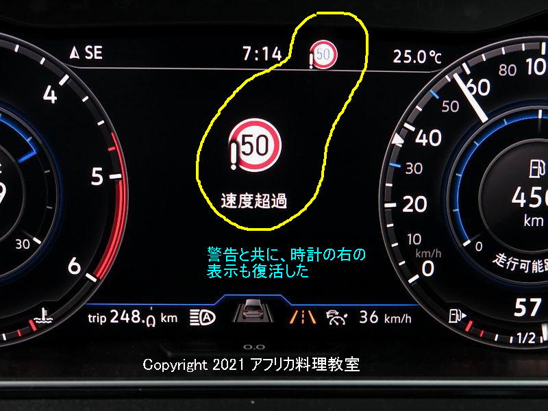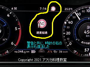速度警告のアラームと共に 時計の右の表示も復活した。 そういえば、最初に交通標識認識をONにしたときも、そのような動きだったかなー。 これで、時計の右の表示も昔のように戻りました。 |