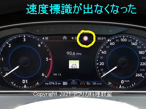 交通標識認識以外を選んだときに、時計の右に時計の右に出ていた速度標識が出なくなってしまった。 | |