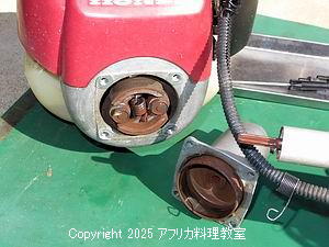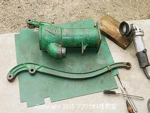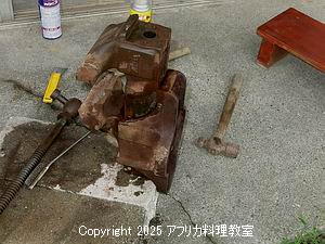 内部にたまったゴミをケルヒャーで洗浄し乾燥、をカップワイヤーブラシで