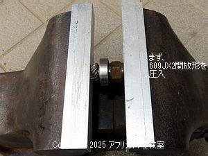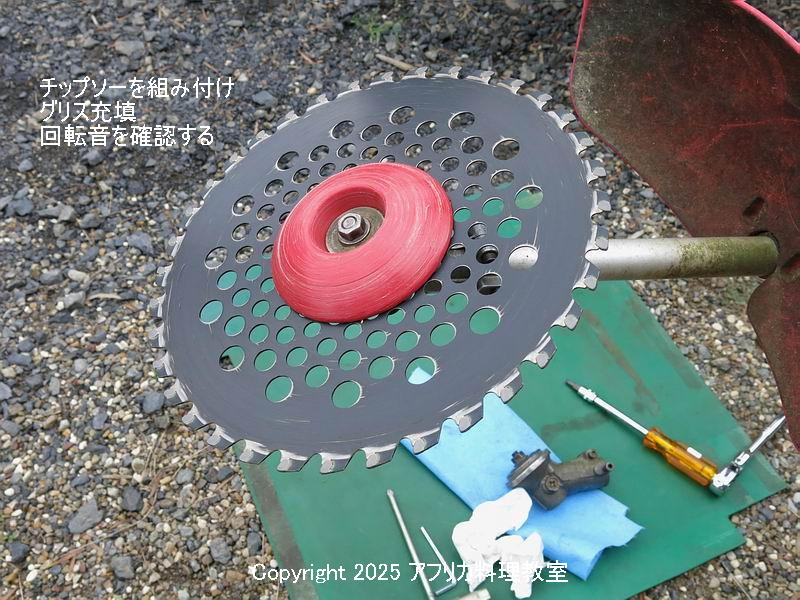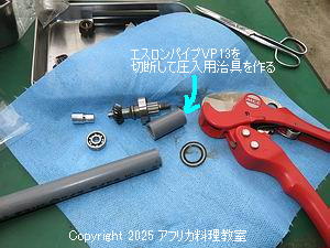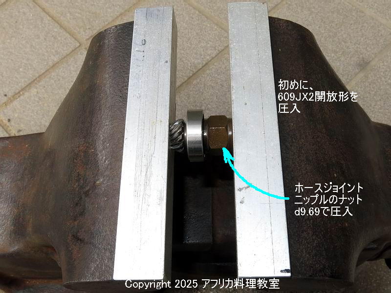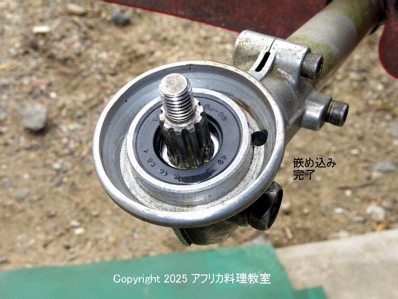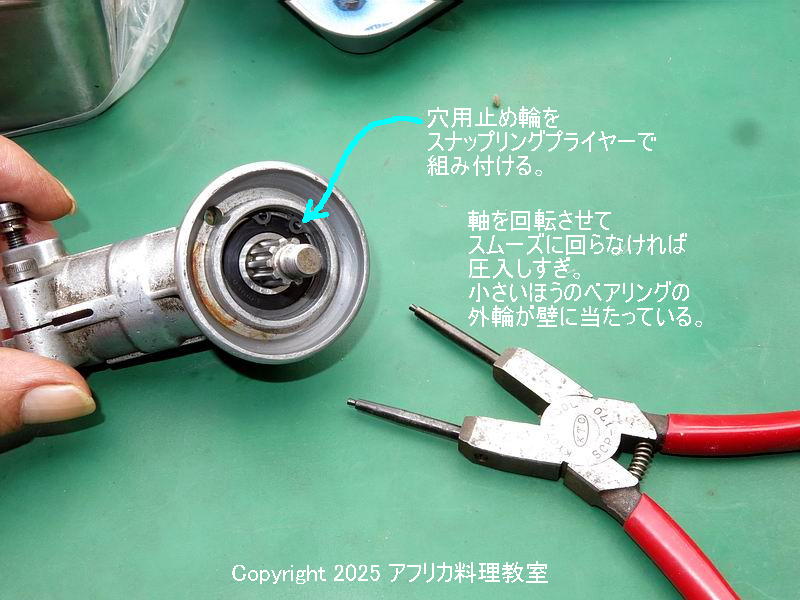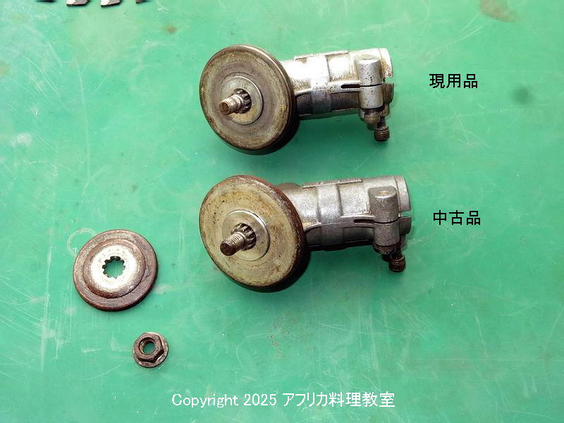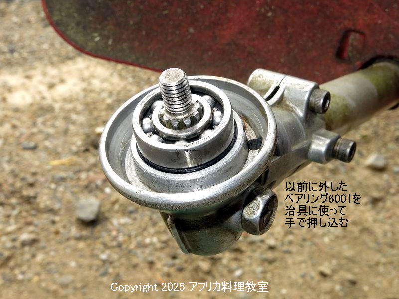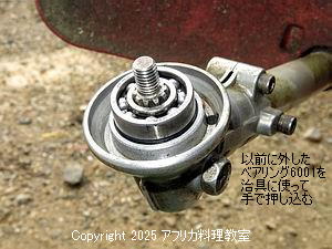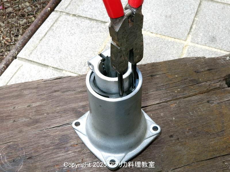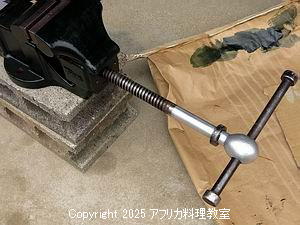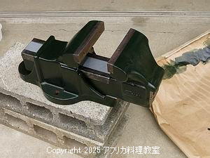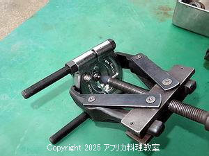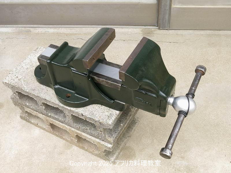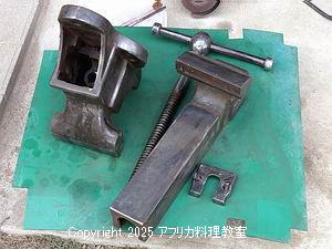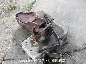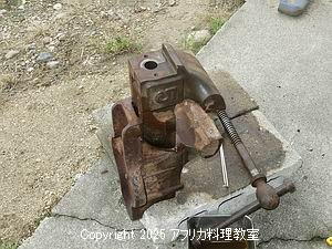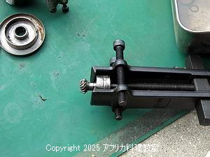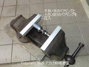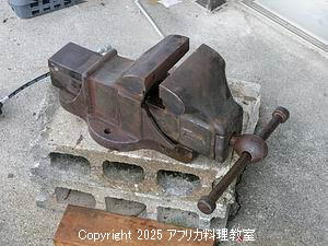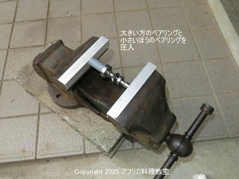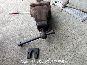 カーツの刈払機ギヤヘッドの分解ができたので、ベアリングを圧入するための万力が近所にないかなと、