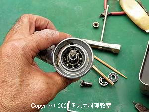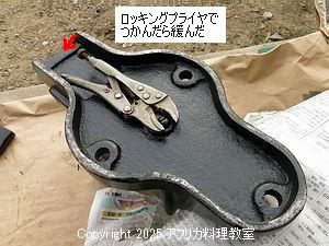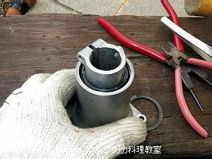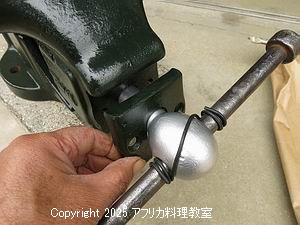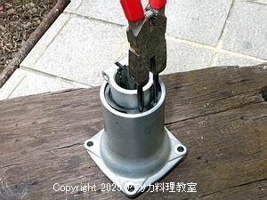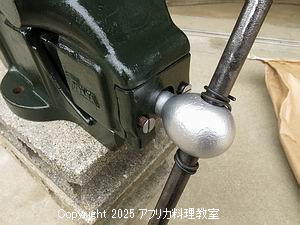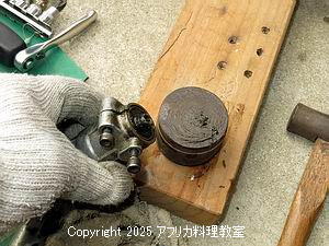 ハンマーで叩きながらハンドルを回すと、わずかに口金は動く。