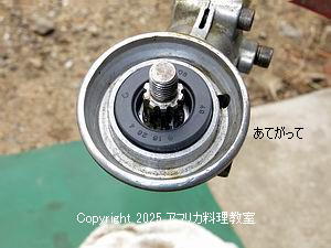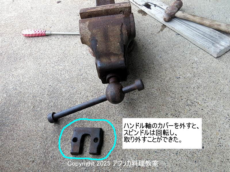 スピンドルねじの固着はなく、ハンドルをCCW方向に回せば容易に外せた。