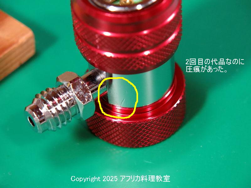 パッキンが変形していた赤チャージホースTA137HB-1、