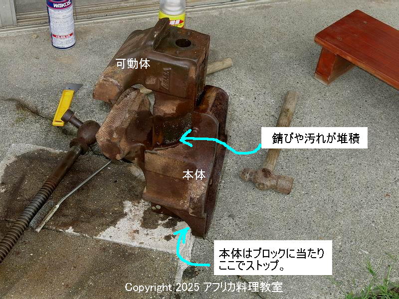 2025-10-19 古いリード型バイスの修理 宮田工業株式会社製 TUBASA 5インチ 横万力(角銅形)