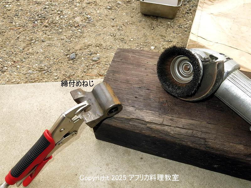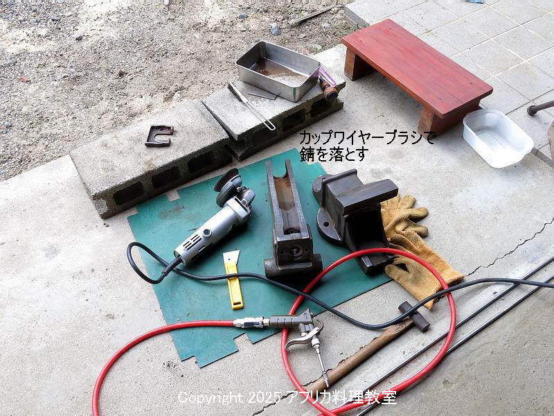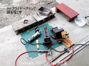 塗装の表面と、錆をカップワイヤーブラシ等できれいにする。