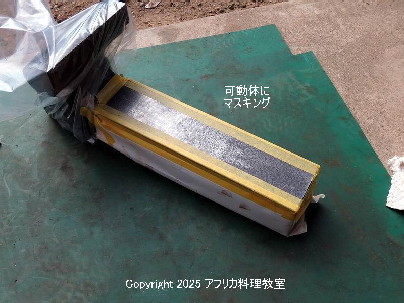 可動体の緑が乾いたら、上面の摺動しないところ以外をマスキング。