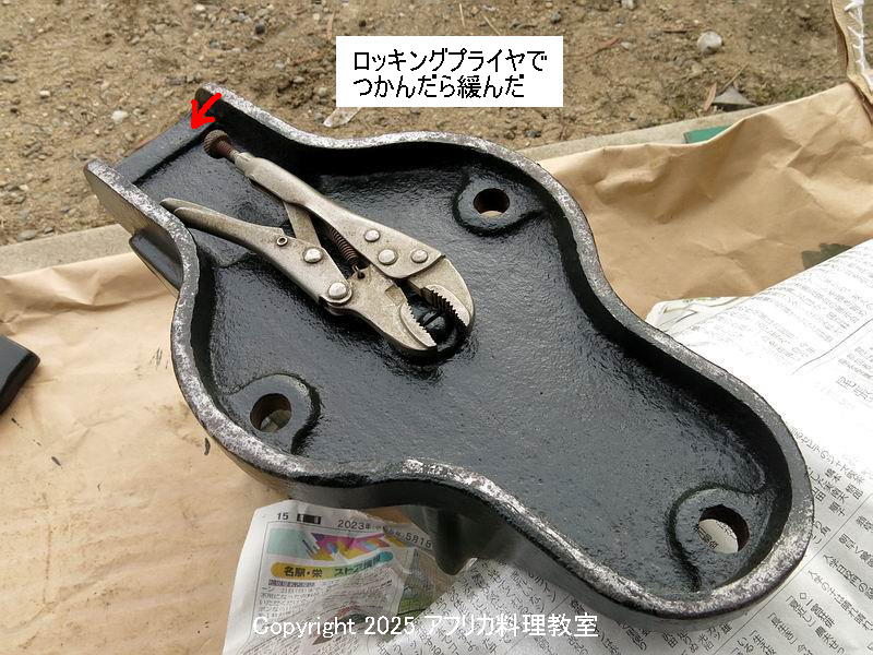 ロッキングプライヤーでつかめば緩められるのではないかと試したら緩みました。