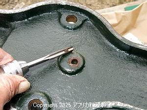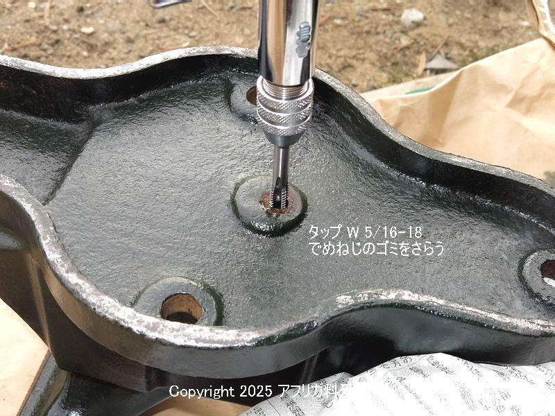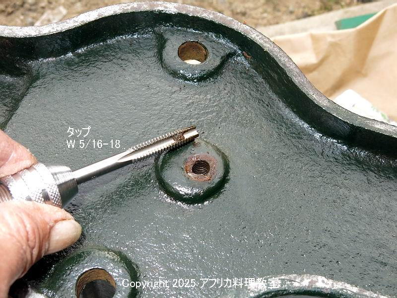 ねじはウィットねじ、W 5/16-18タップでめねじのゴミをさらう。