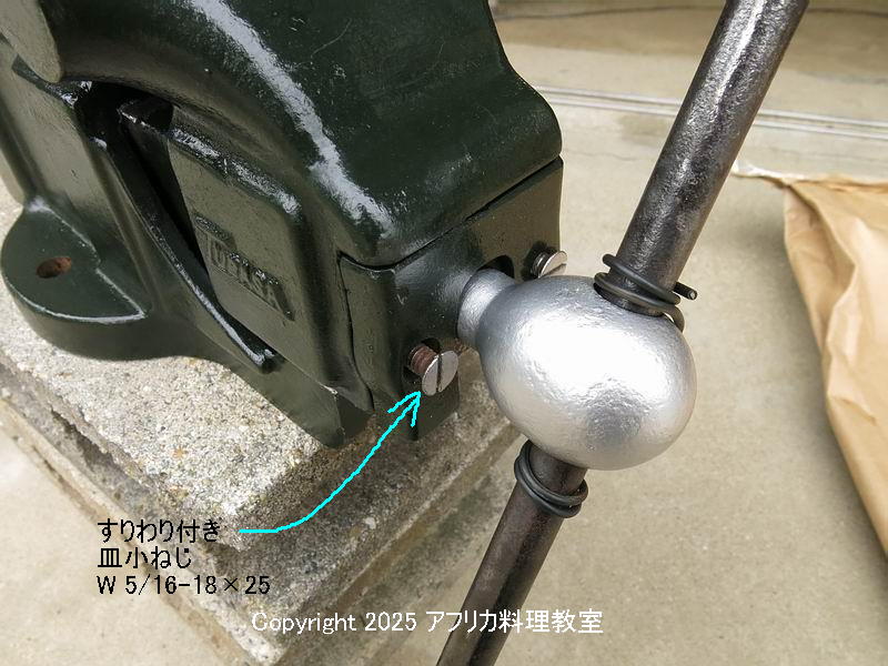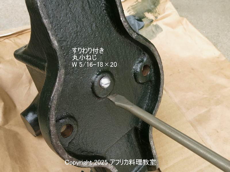 すり割りつきさら小ねじ W 5/16-20×25で固定。